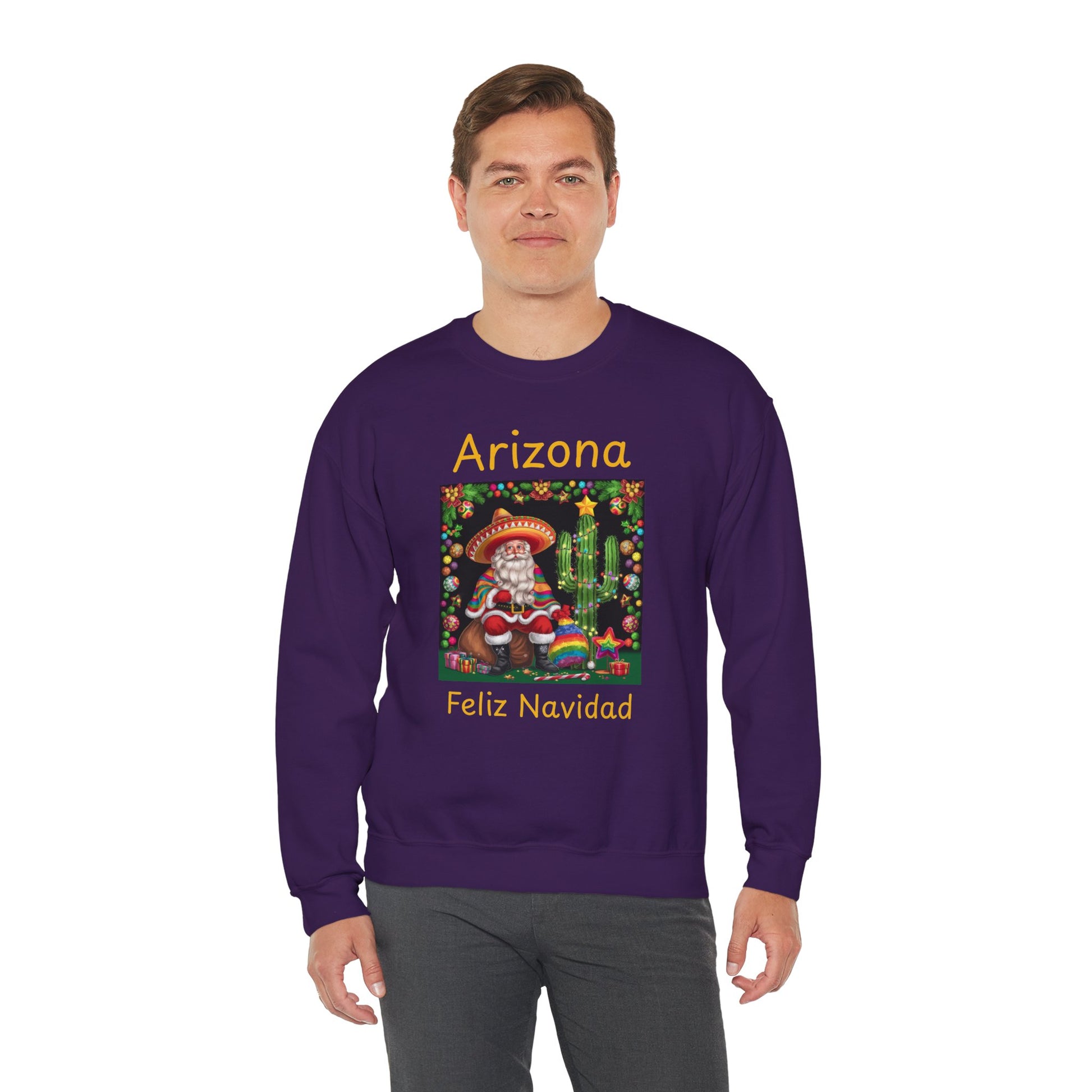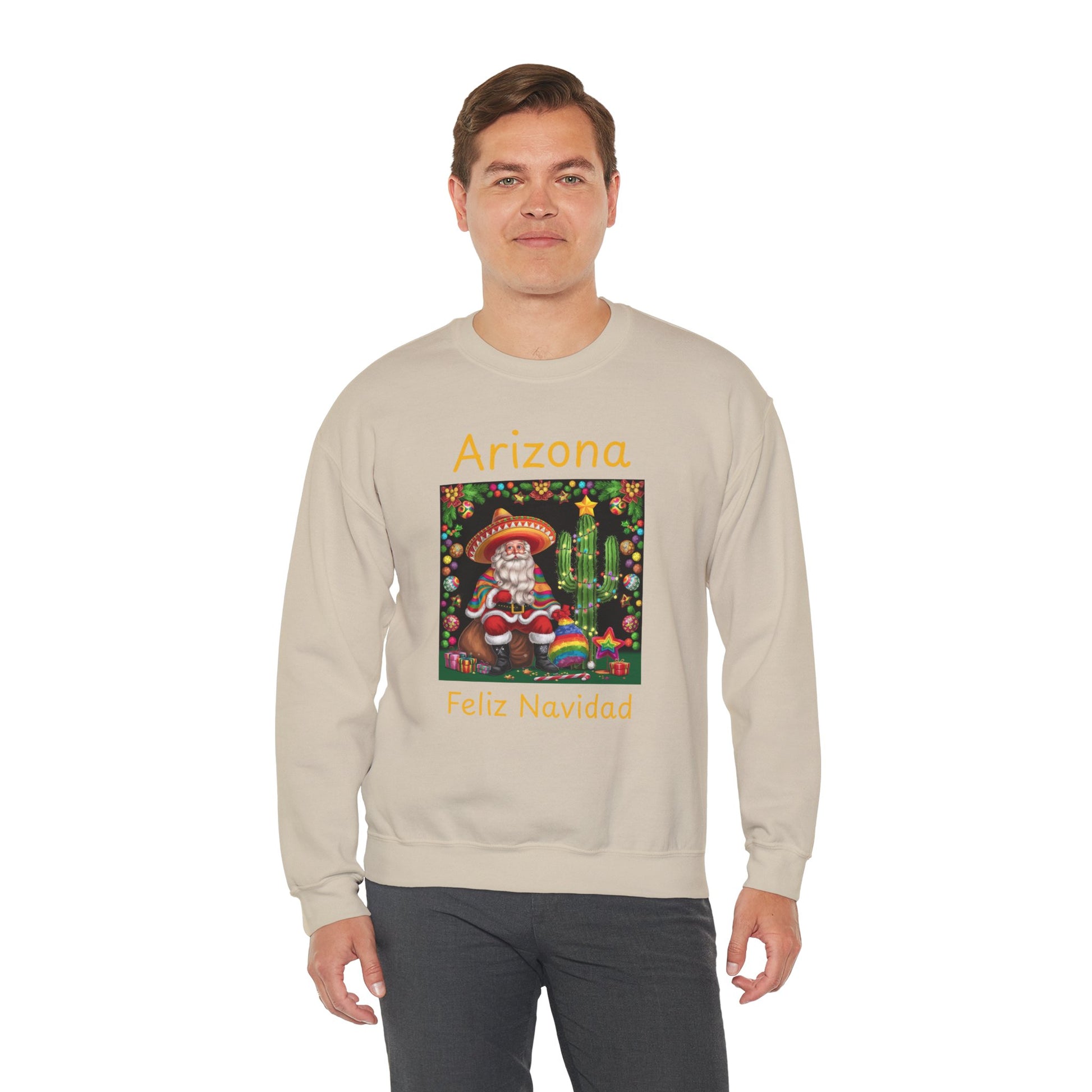 Arizona Feliz Navidad Sweatshirt — Southwestern Santa Holiday Crewneck,Unisex