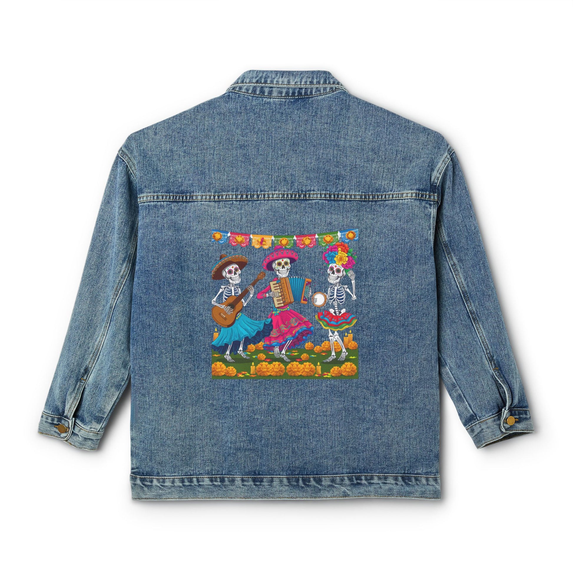 Day of the Dead Denim Jacket, Women's Fall Jacket, Casual Layering Piece, Festival Wear, Unique Gift Idea, Bohemian Style Jacket