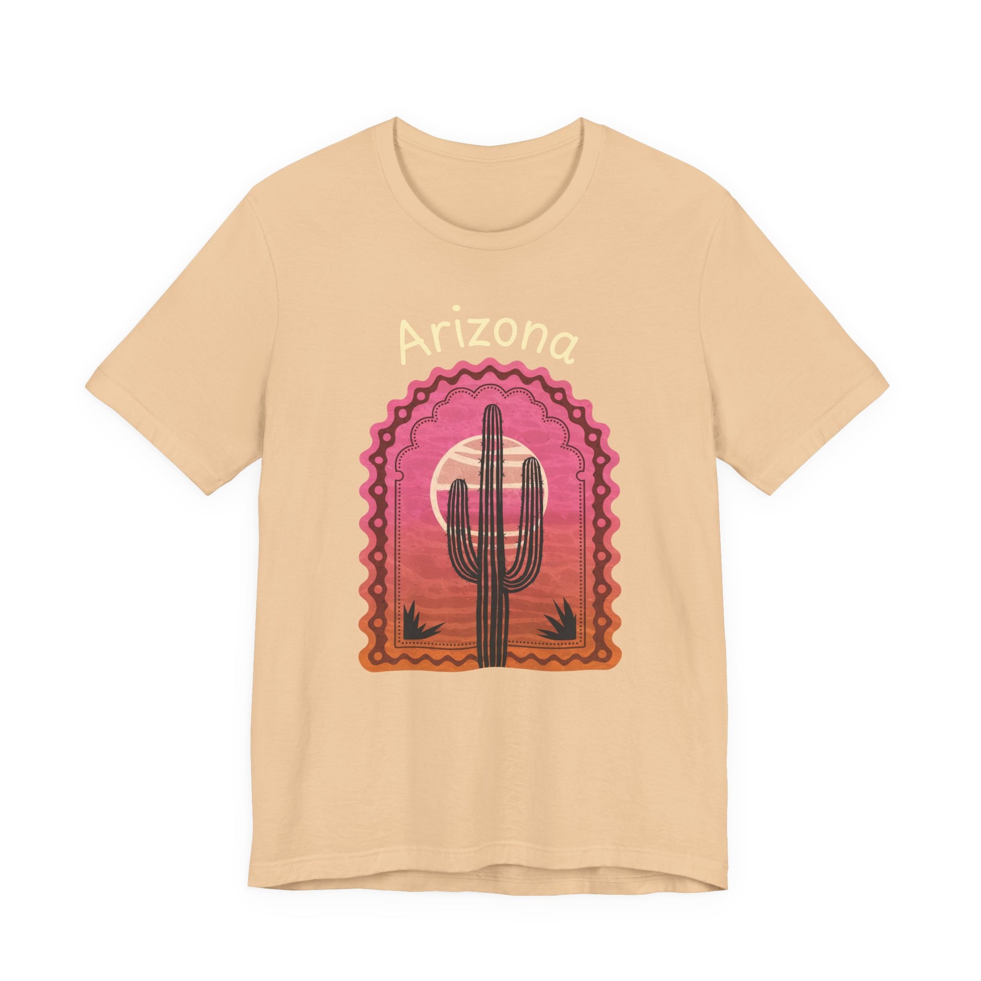 Desert Saguaro Sunset Graphic Tee for Nature Lovers, Boho Summer Shirt, Gift for Adventurers, Vacation Wear, Casual Outfit