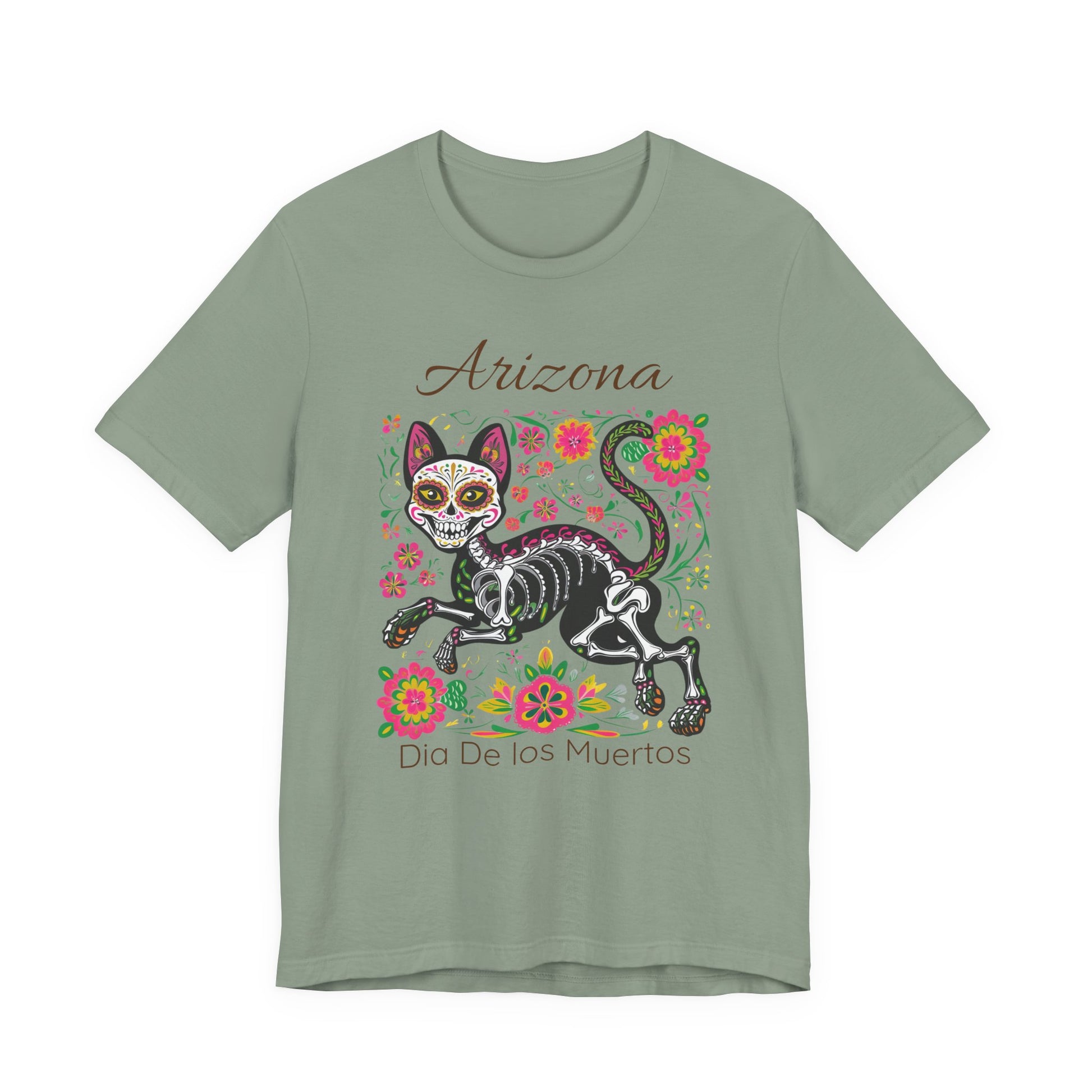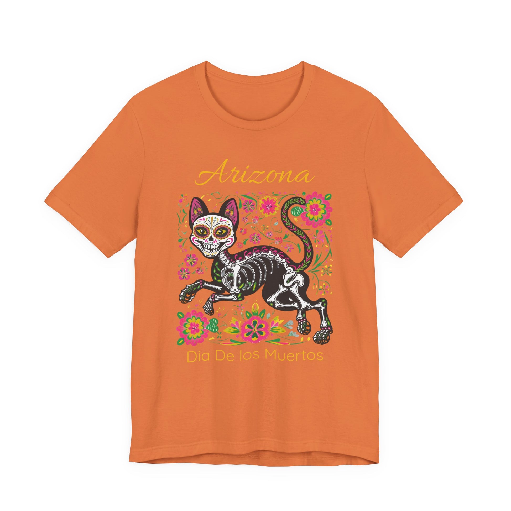 Día de los Muertos Cat Tee: Unisex Jersey Short Sleeve Tee, Halloween Shirt, Arizona Apparel, Festival T-Shirt, Cultural Celebration Top