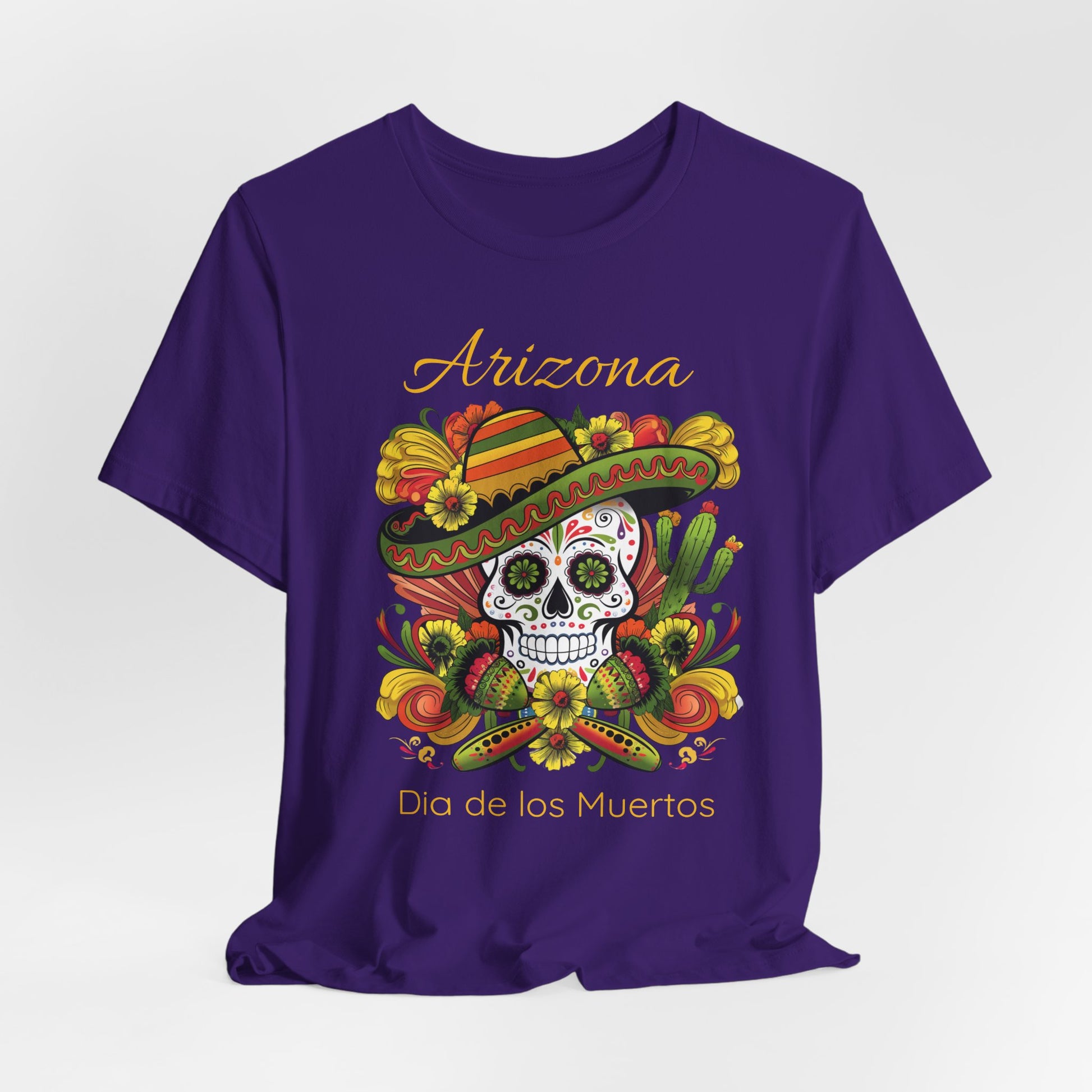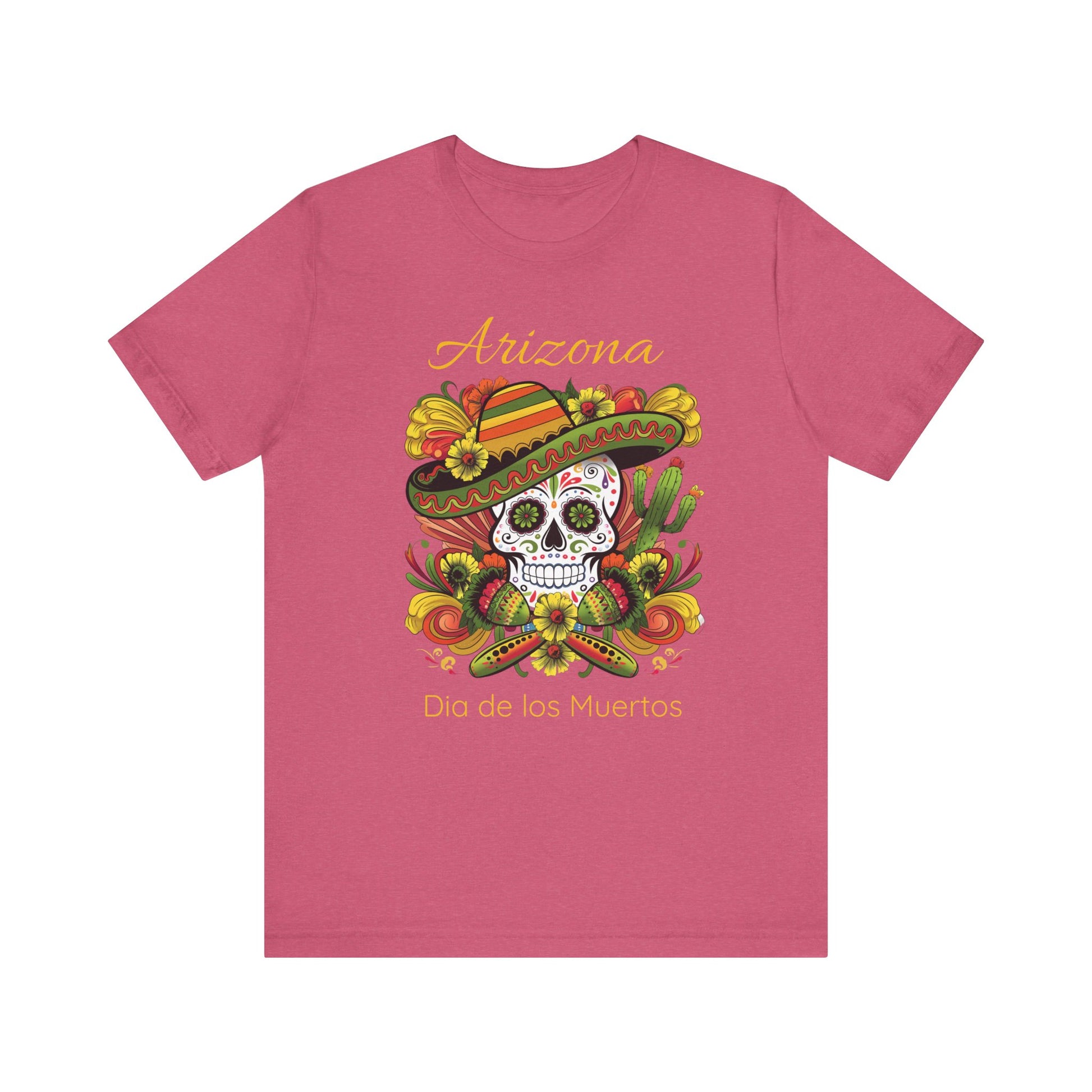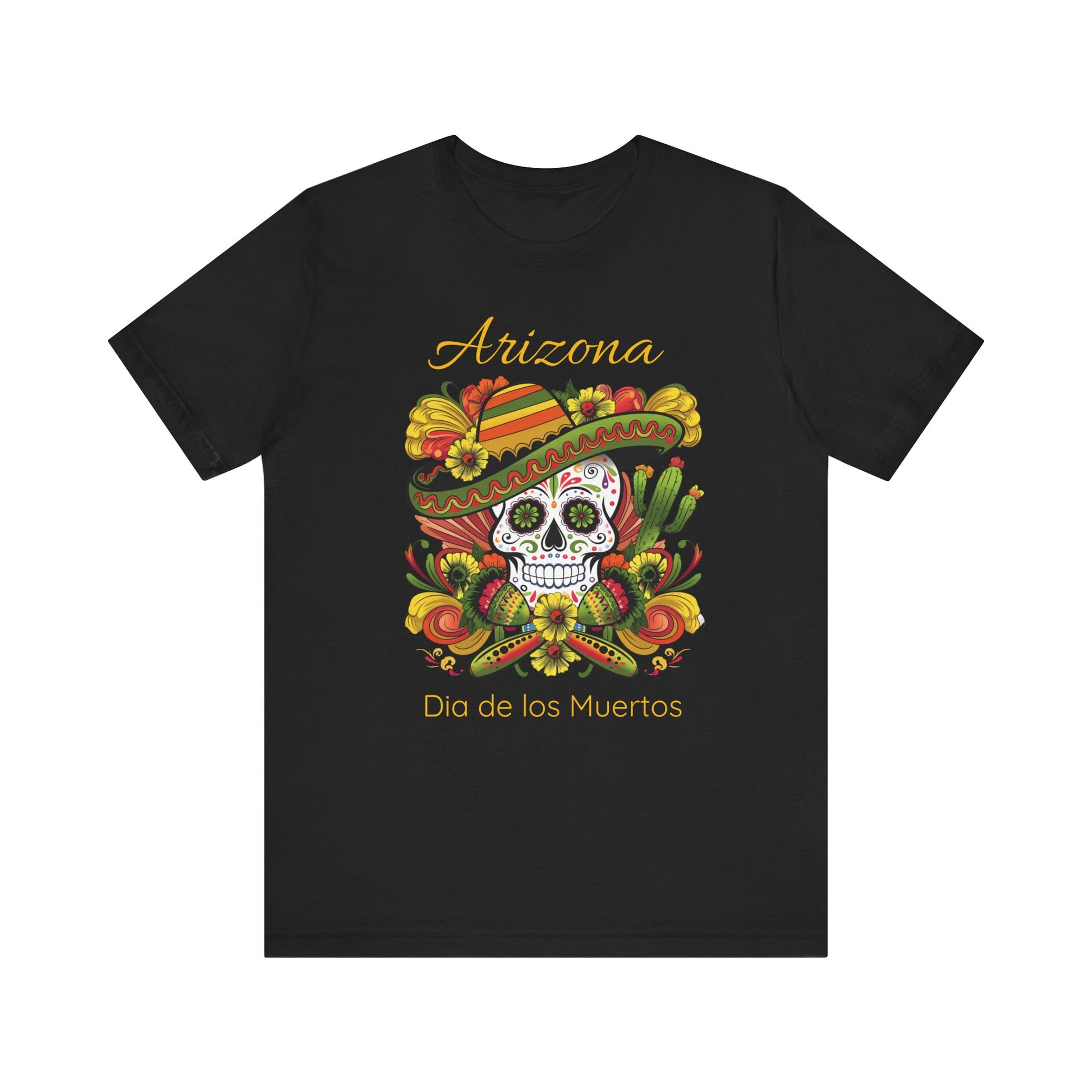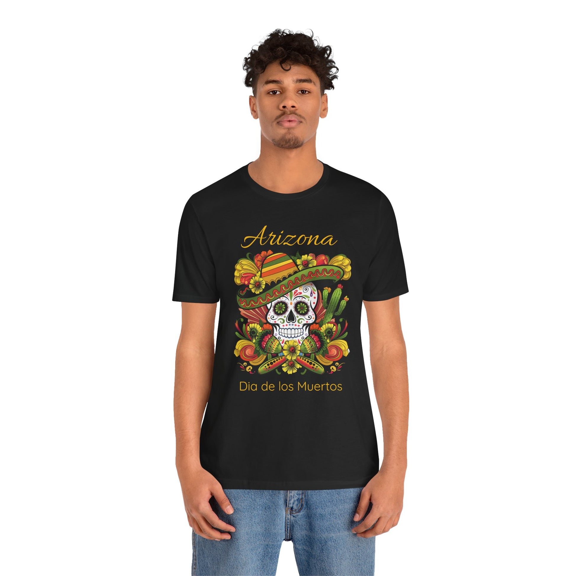 Dia de los Muertos Unisex Jersey Tee, Colorful Skull T-Shirt, Arizona Design, Holiday Apparel, Casual Wear, Gifts for Him and Her