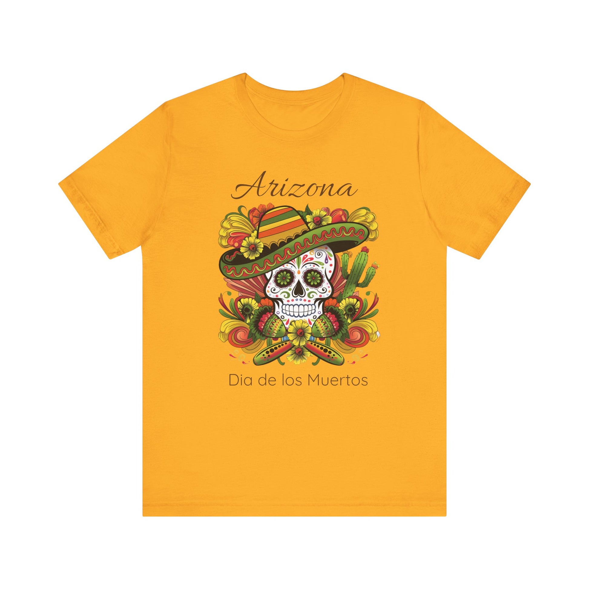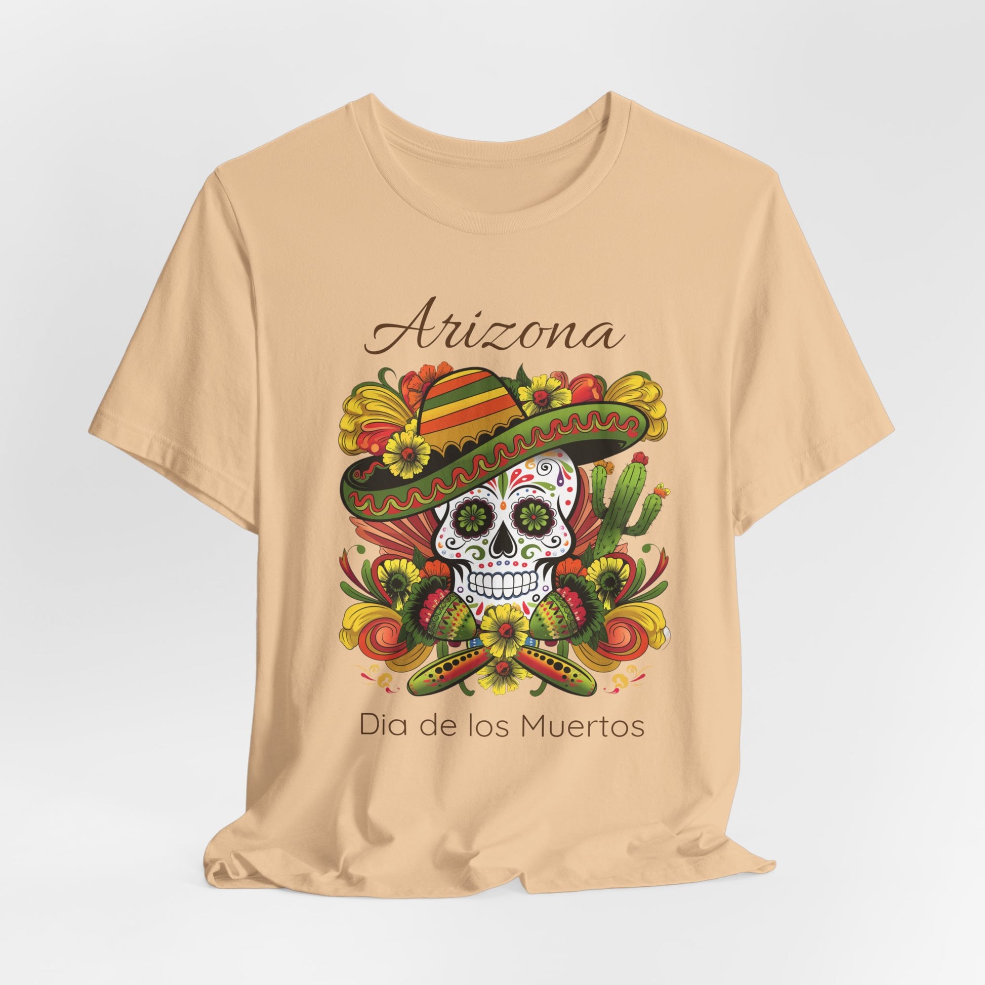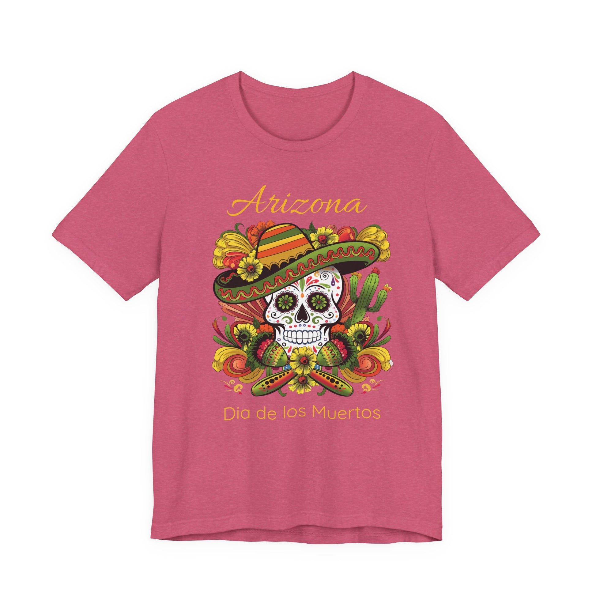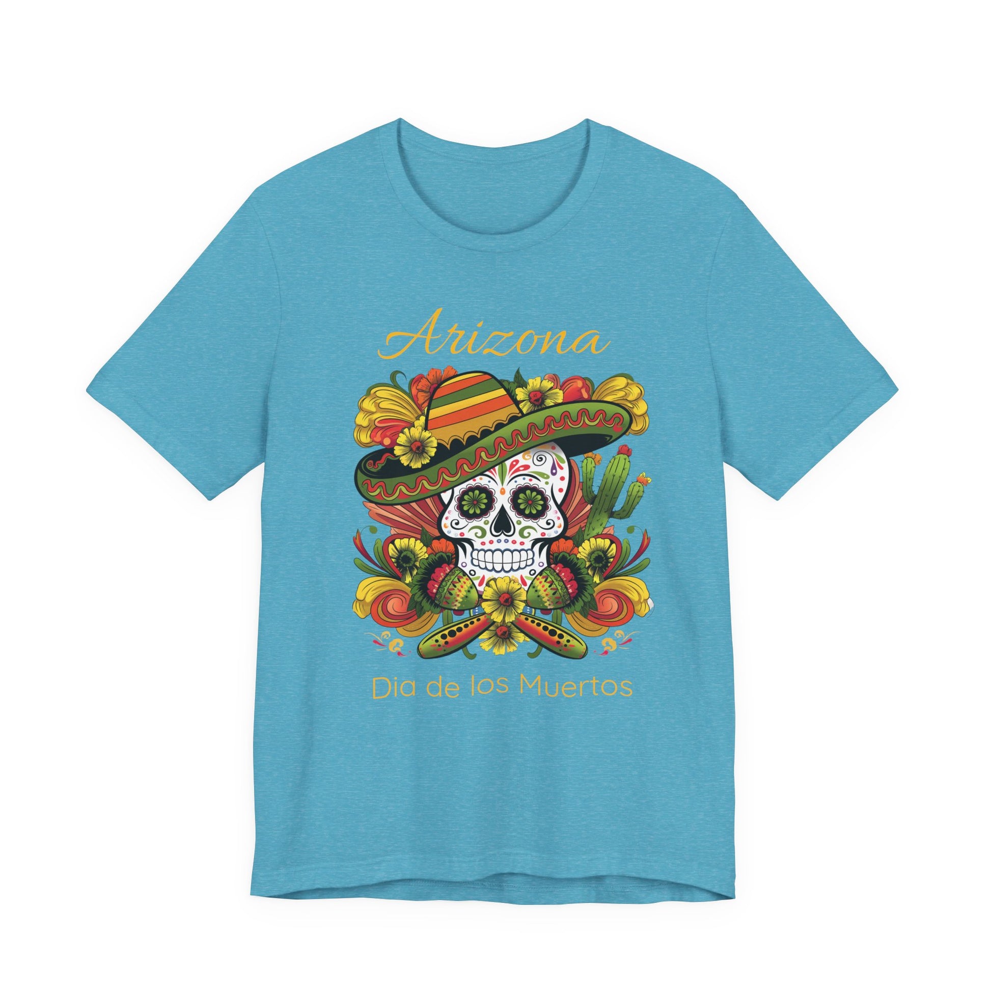 Dia de los Muertos Unisex Jersey Tee, Colorful Skull T-Shirt, Arizona Design, Holiday Apparel, Casual Wear, Gifts for Him and Her
