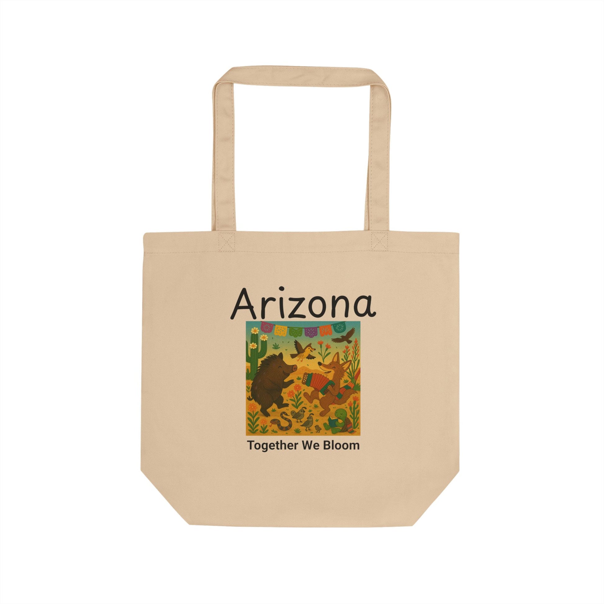 A unique and eco-friendly Tote Bag featuring a design of Sonoran desert Javelina and Coyote dancing in the spring. This Tote Bag exudes a natural and playful vibe, perfect for nature lovers and those who appreciate wildlife. Ideal for carrying groceries, books, or everyday essentials, this Tote Bag is a sustainable and stylish accessory that adds a touch of the desert to your daily routine. Suitable for Earth Day, nature-themed events, or as a gift for environmentally conscious individuals.