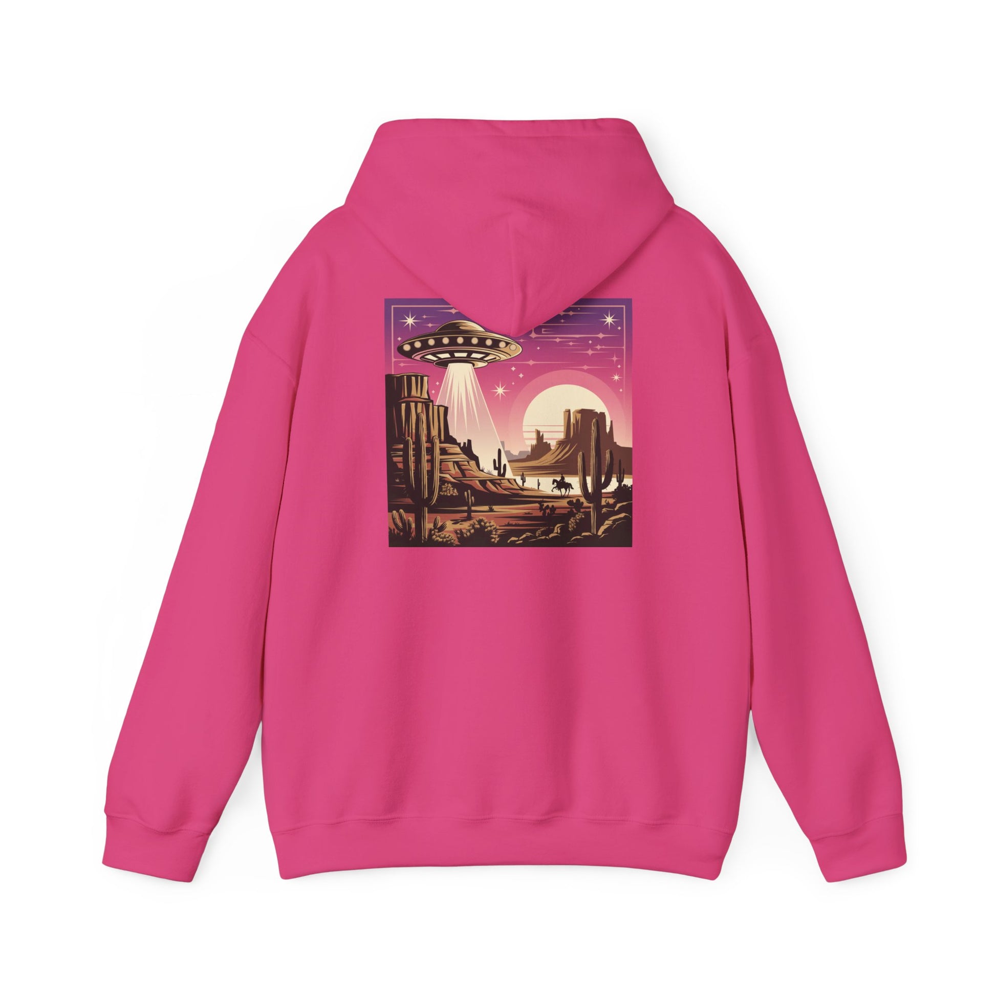 Vintage UFO Adventure Hoodie, Retro Space Sweatshirt, Unisex Hooded Pullover, Sci-Fi Gift, Cool Graphic Hoodie